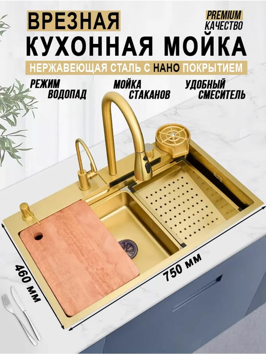 Мойка Многофункциональная с функцией водопада золотая информация: