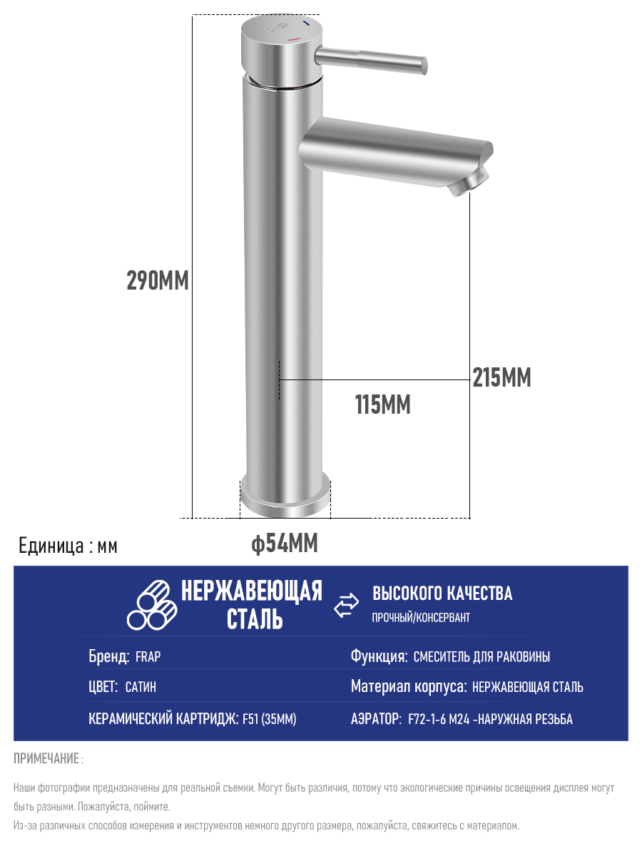 Смеситель для раковины Frap YF10801-2 нержавеющая сталь сатин информация:
