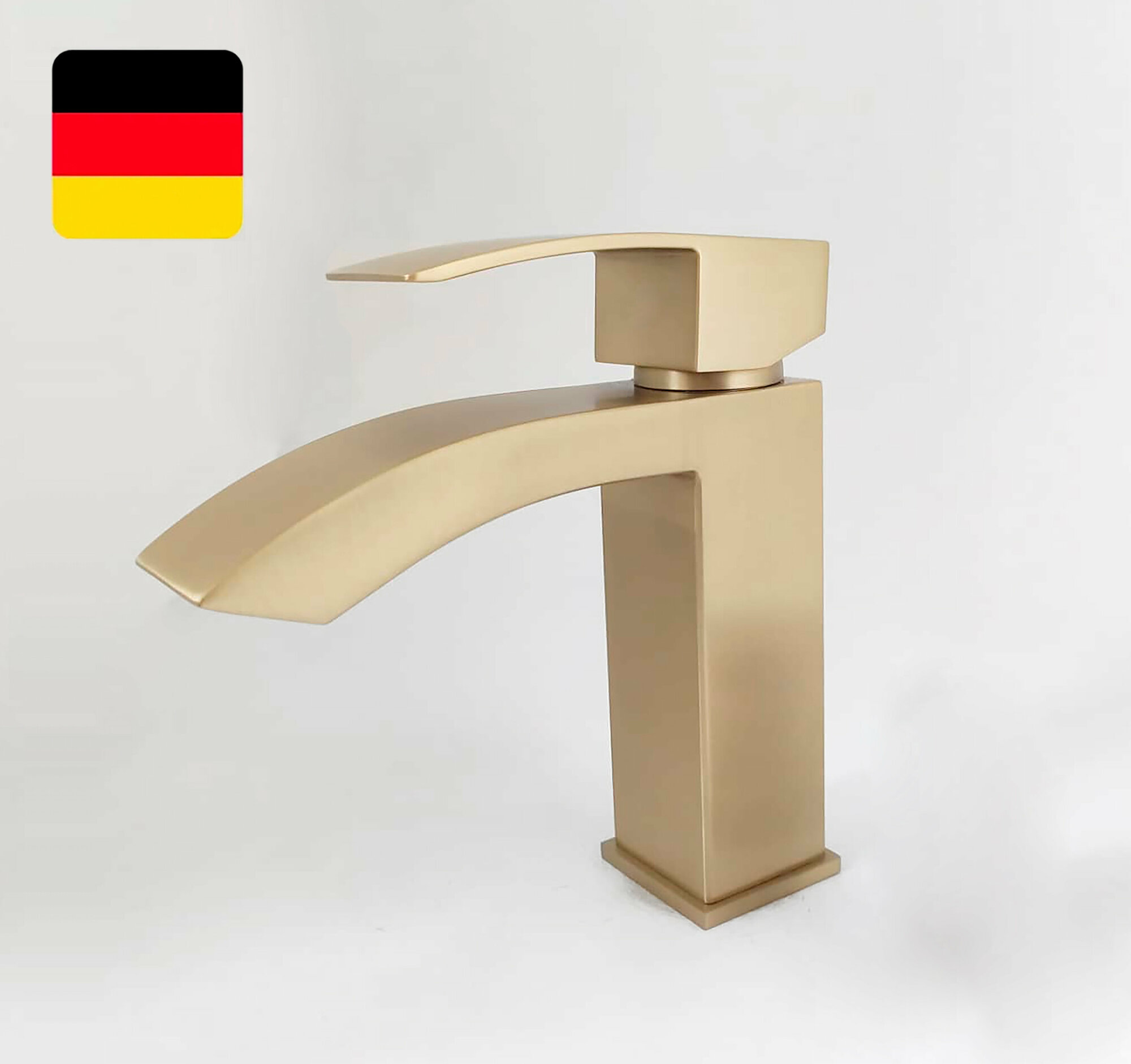 Смеситель для раковины в ванной, однорычажный, плоский, квадратный, нержавеющая сталь, золотистая бронза информация: