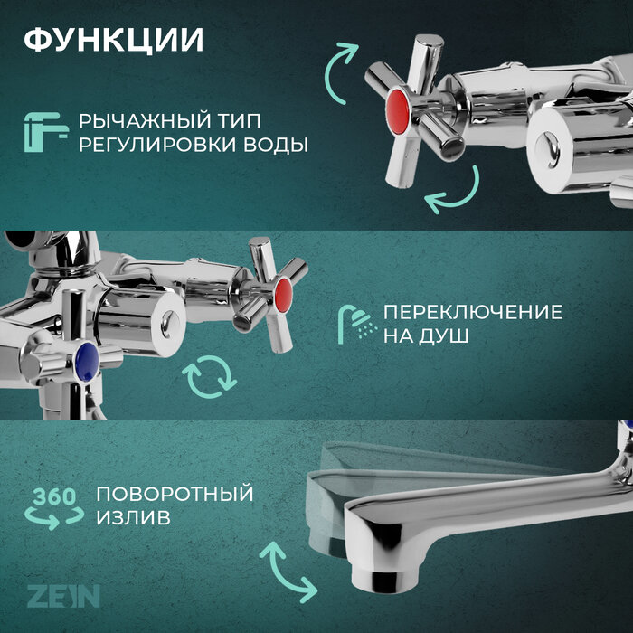 Отзывы на Смеситель для ванны ZEIN Z4051, короткий излив, кран-букса латунь 1/2", душевой набор, хром