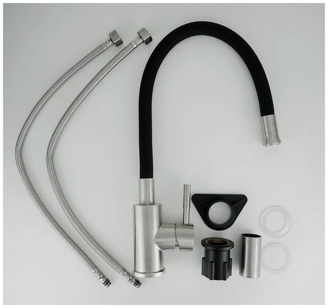 | Дополнительная информация | Корпус: нержавеющая сталь, марка SUS 304 (пищевая сталь) Излив: гибкий, трехслойный, EPDM резина. Картридж: универсальный ESKO, 35мм |