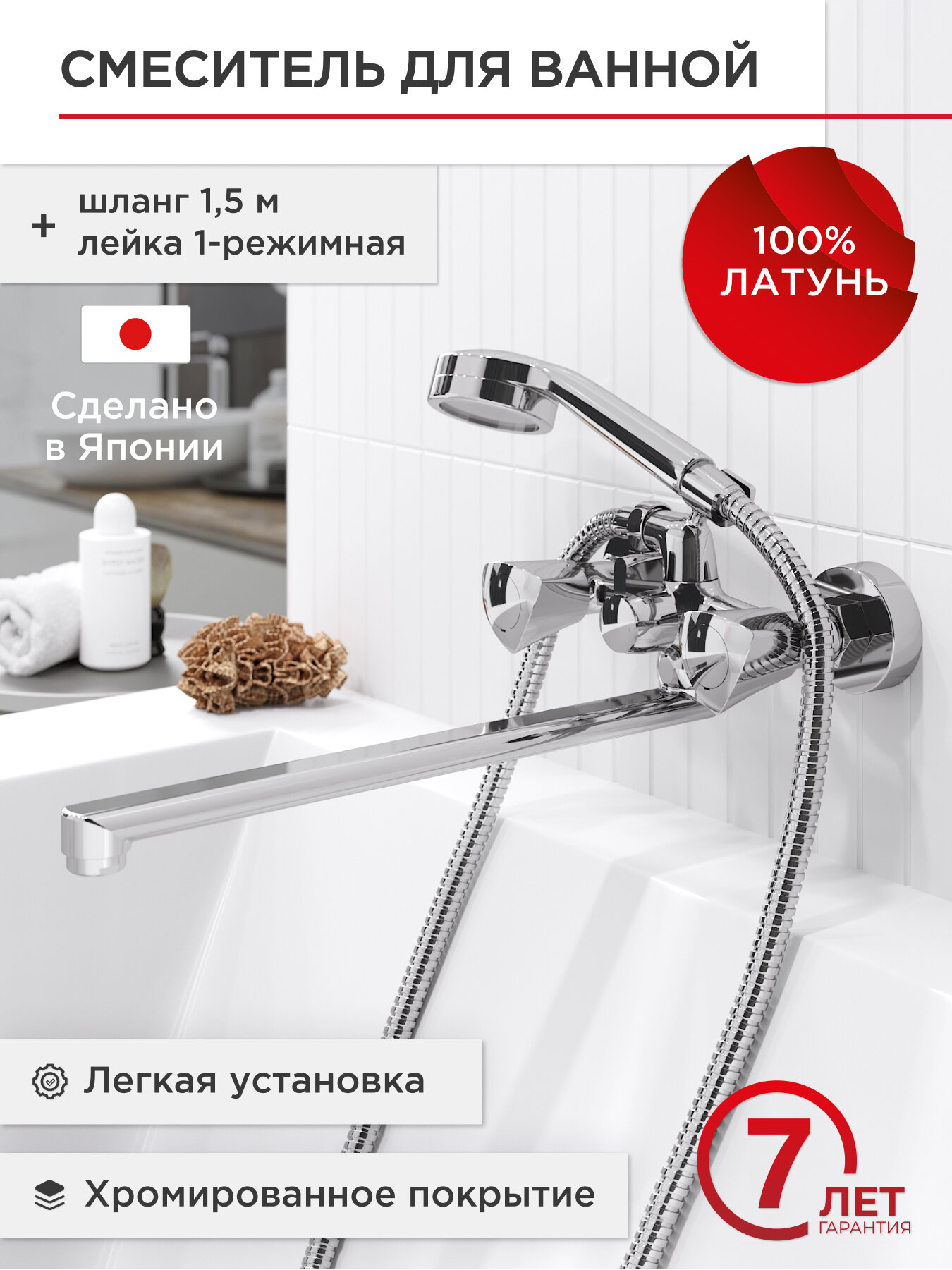 Смеситель для ванной с длинным изливом с лейкой TOKITO TOK-MIT-1015 серия MITSUISHI, латунный, хром