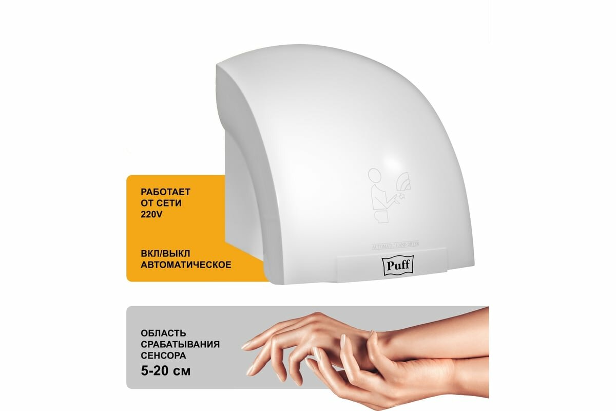 Электросушитель для рук "Puff-8819", белый, 1,8 кВт