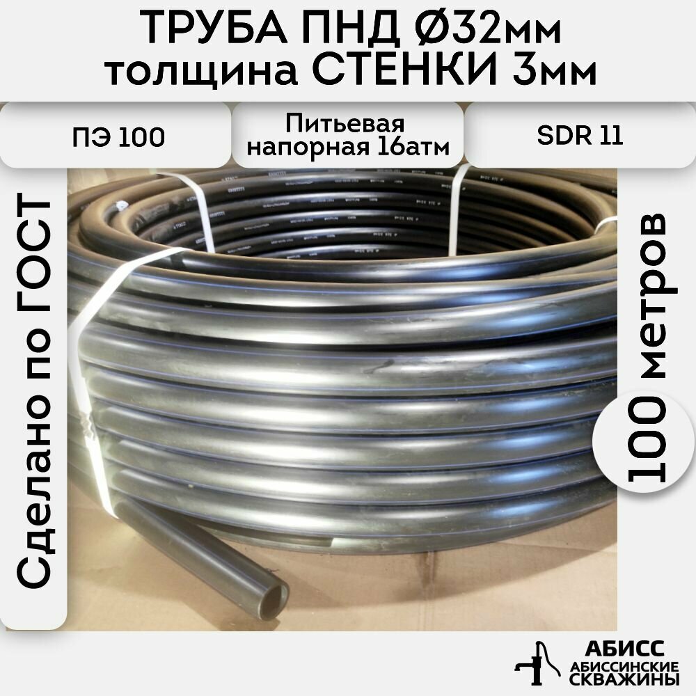 10 цен на Труба ПНД 32х3. длина 100метров. толщина стенки 3мм. водопроводная питьевая напорная (16атм) ПЭ100, SDR11 ГОСТ18599-2001 идеальна для абиссинской скважины