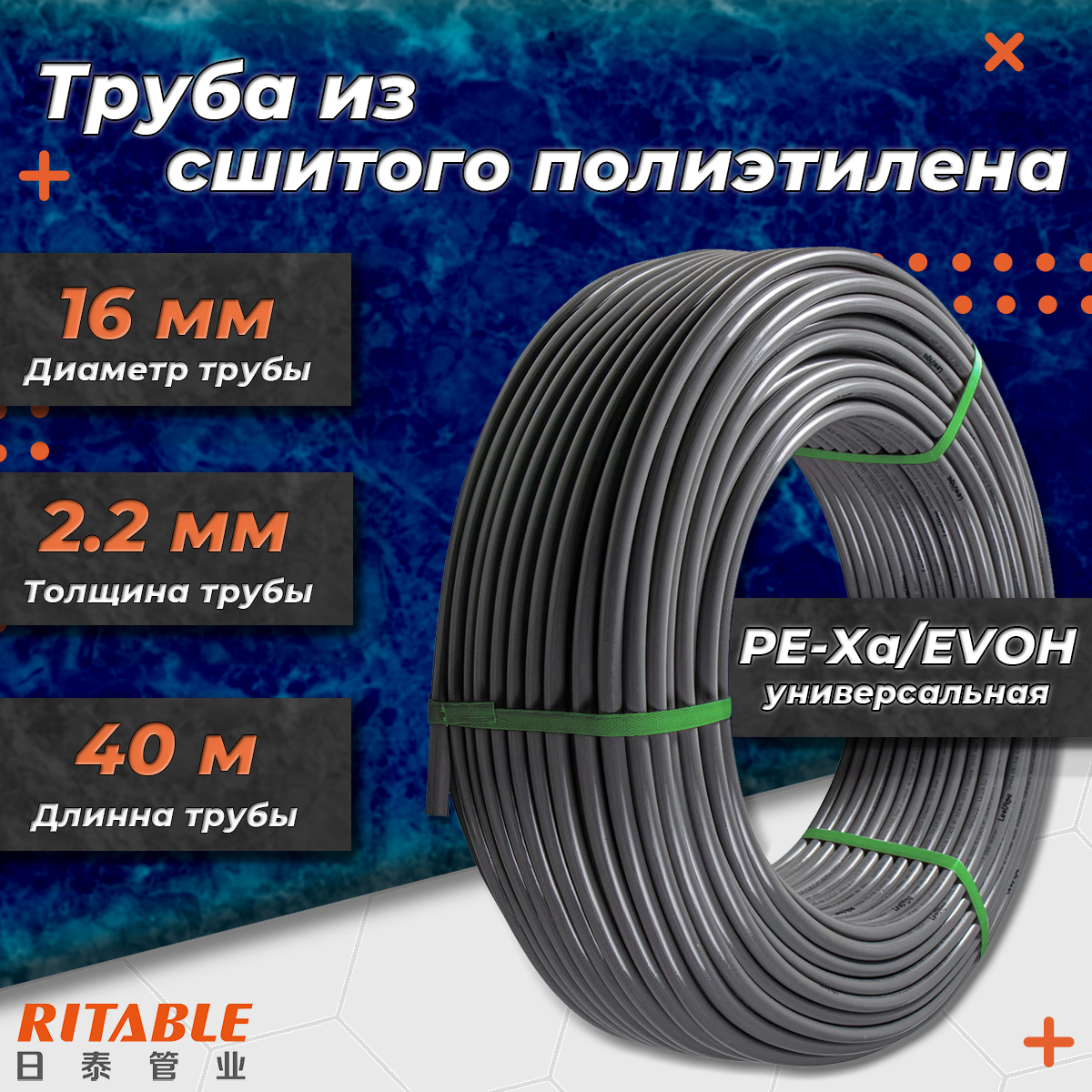 10 цен на Труба из сшитого полиэтилена RITABLE - 16x2,2 (PE-Xa/EVOH, PN10, бухта 40 м, цвет серый)