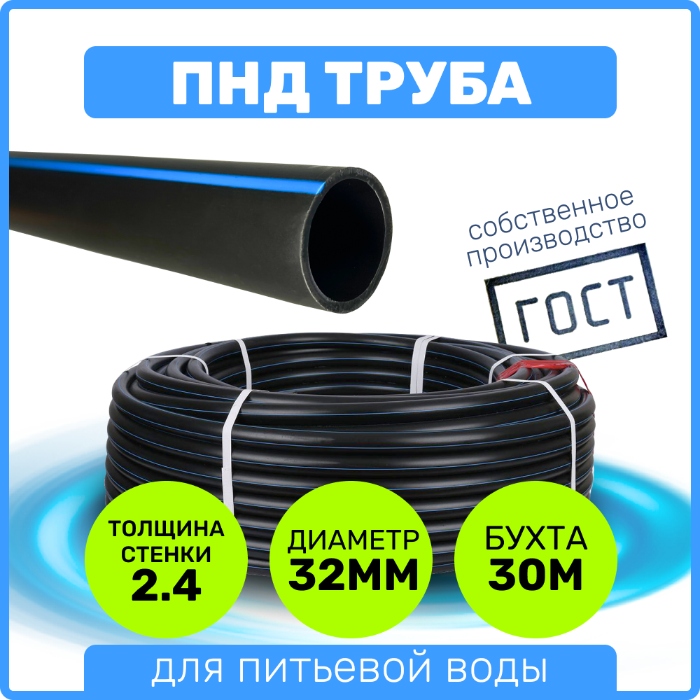 Труба ПНД 32 мм x 2,4 мм x 30 метров водопроводная питьевая напорная информация: