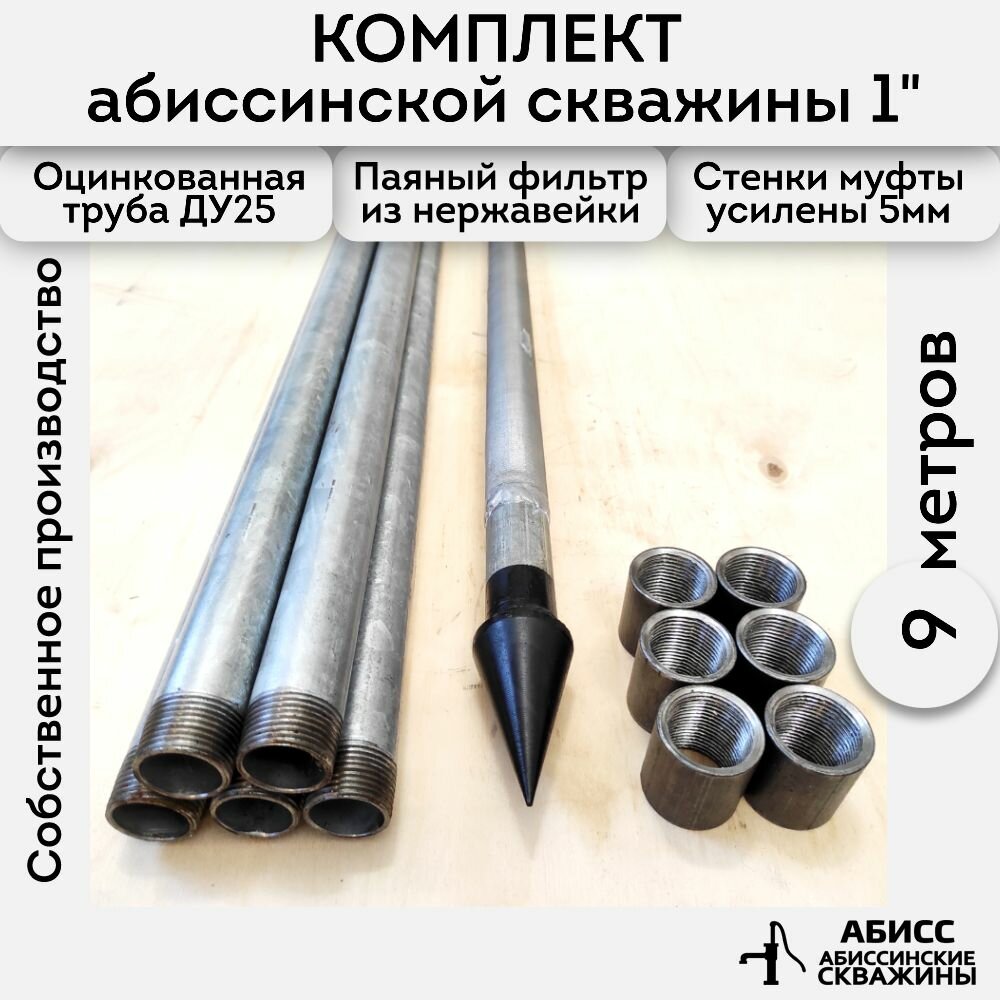 Комплект 9м. для самостоятельной установки абиссинской скважины на 1" оцинкованный информация: