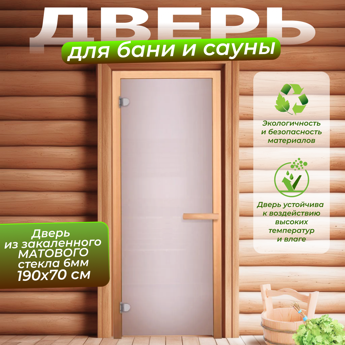 Дверь для сауны Aquaviva, 1890х690 мм, стекло 6 мм (левая), цена - за 1 шт