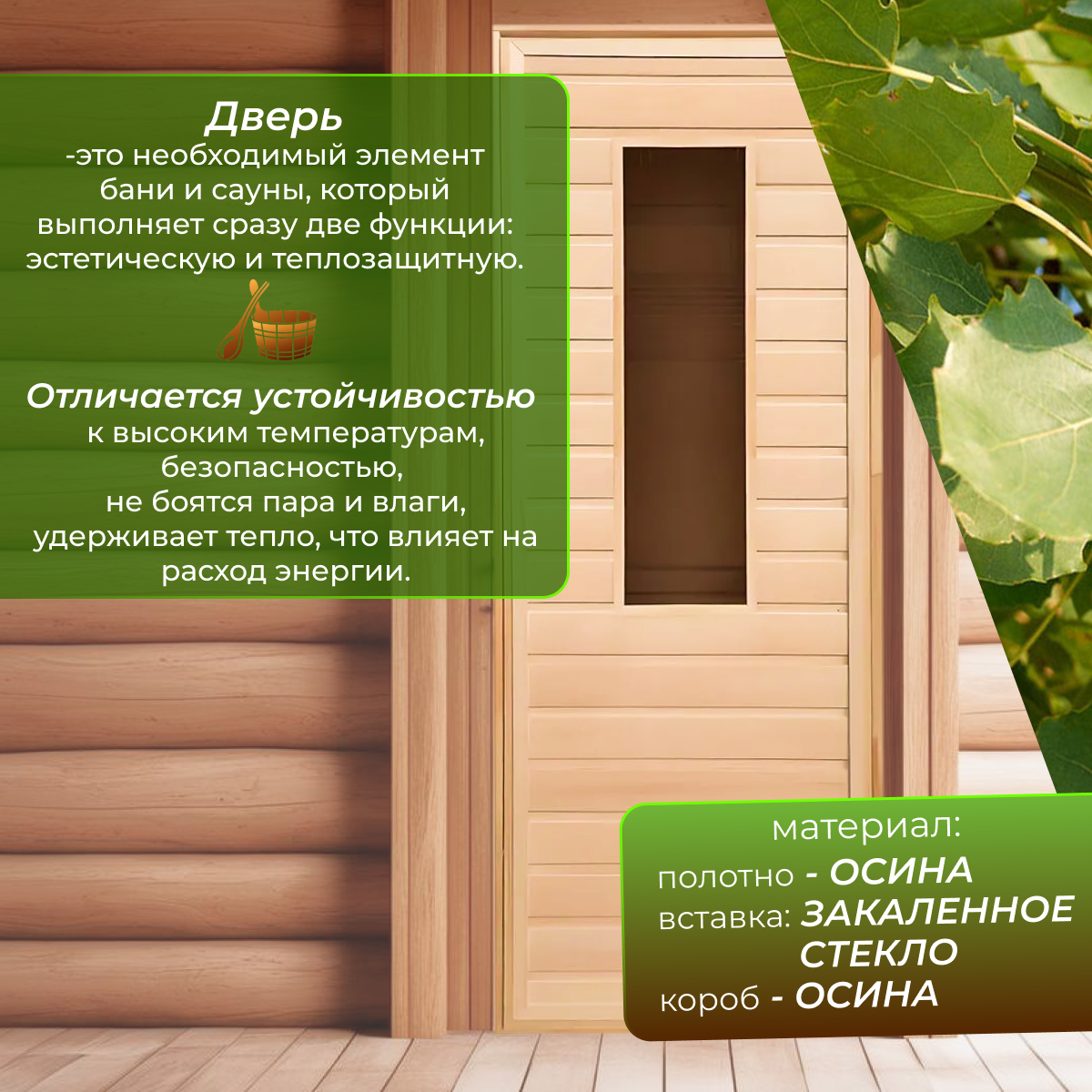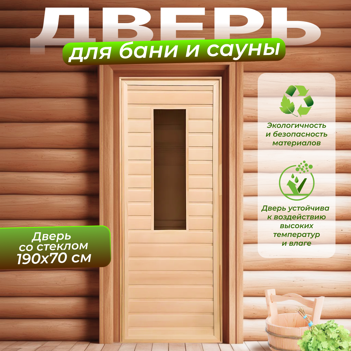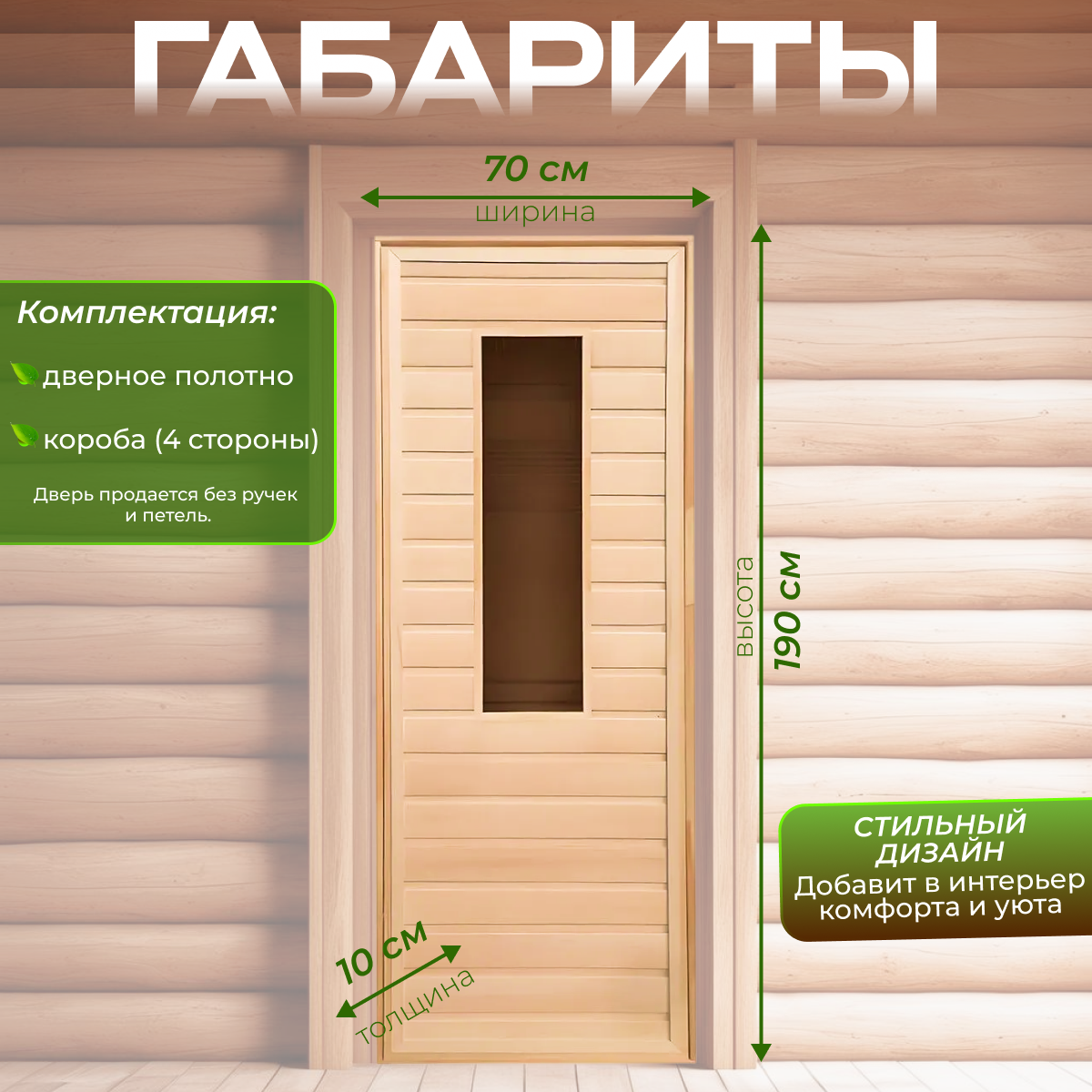 Дверной блок для бани, 190×80см, из сосны, на клиньях, массив, "Добропаровъ"