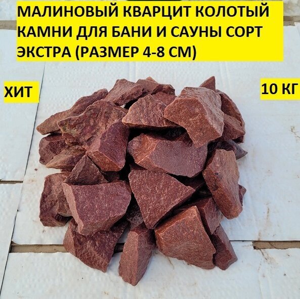 Малиновый кварцит колотый камни для бани сауны сорт экстра 4-8 см 10 кг информация: