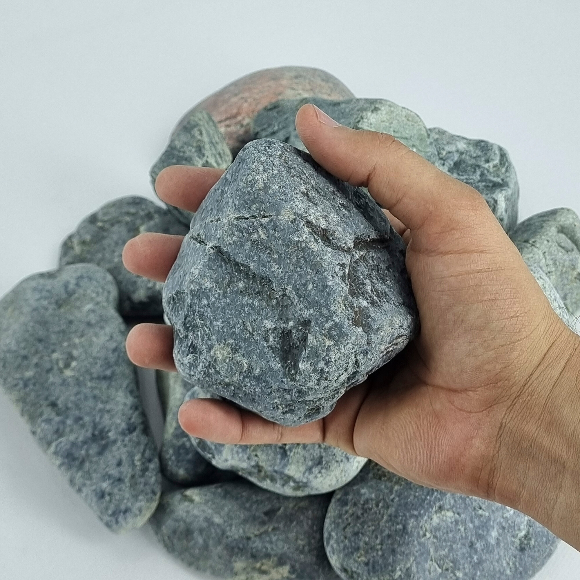 Хакасия Жадеит колотый камни для бани и сауны (размер 7-16 см) упаковка 10 кг