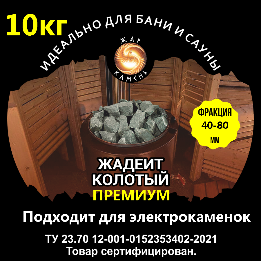 Хакасия Жадеит колотый камни для бани и сауны (размер 7-16 см) упаковка 10 кг