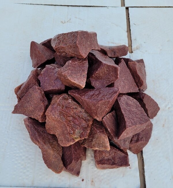 Малиновый кварцит колотый камни для бани сауны сорт премиум 4-8 см 10 кг информация: