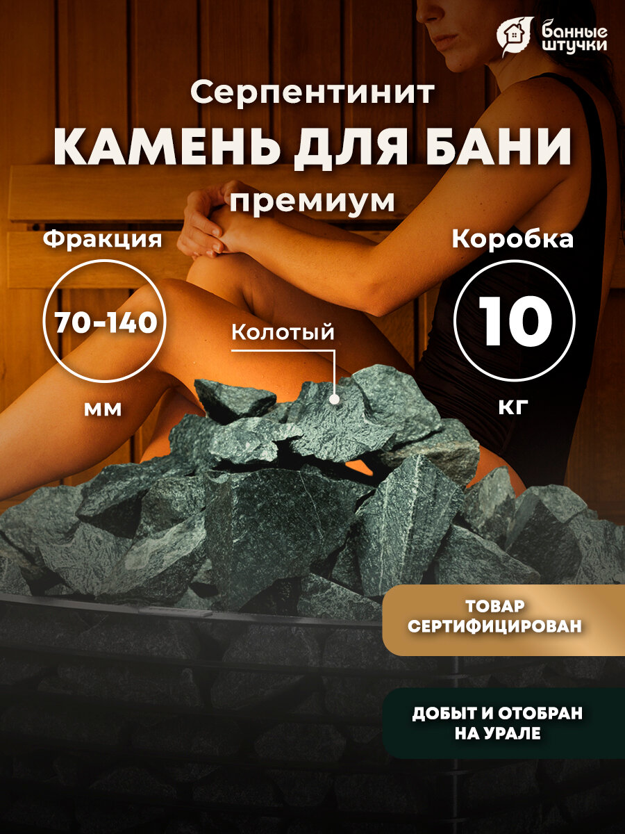Камень "Серпентинит"/для бани/сауны/печи/парилки колотый, средний (70-140 мм), в коробке 10 кг "Банные штучки"