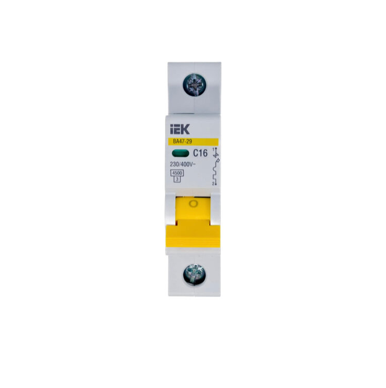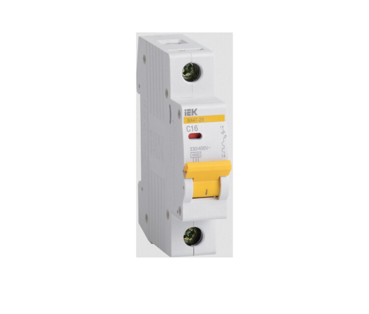 Выключатель автоматический IEK ВА47-29, 1Р, 16 А, 4,5 кА, тип С