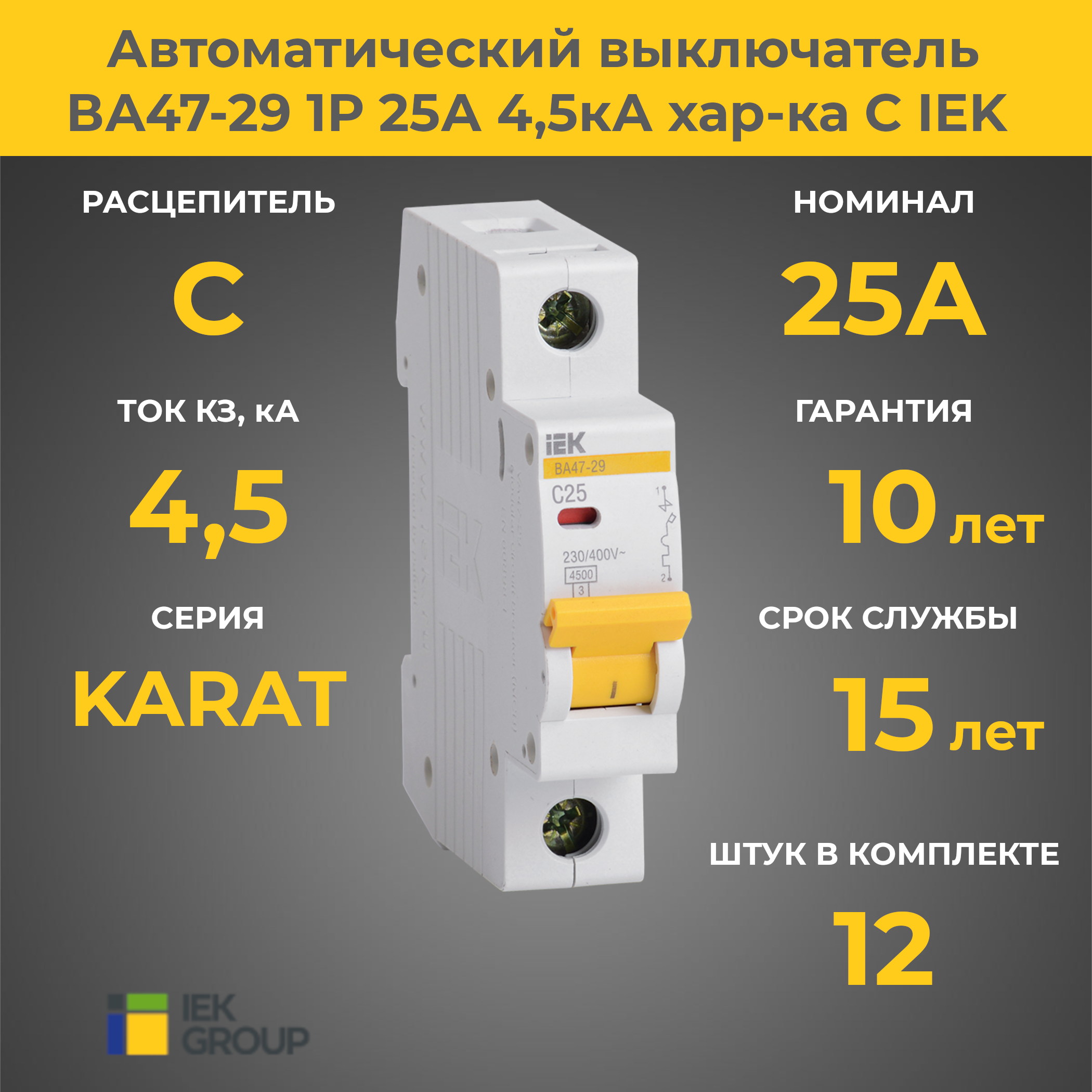 Автоматический выключатель ВА47-29 1P C 25А 4,5кА IEK х 12 шт. информация: