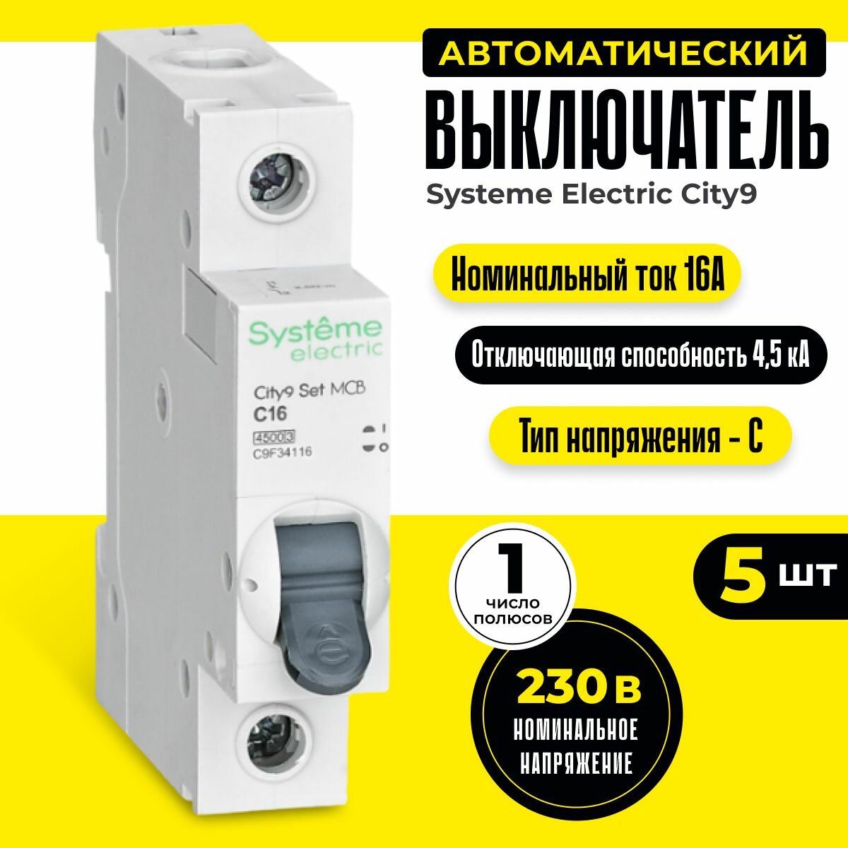 City9 Set Автоматический выключатель (АВ) С 16А 1P 4.5kA 230В