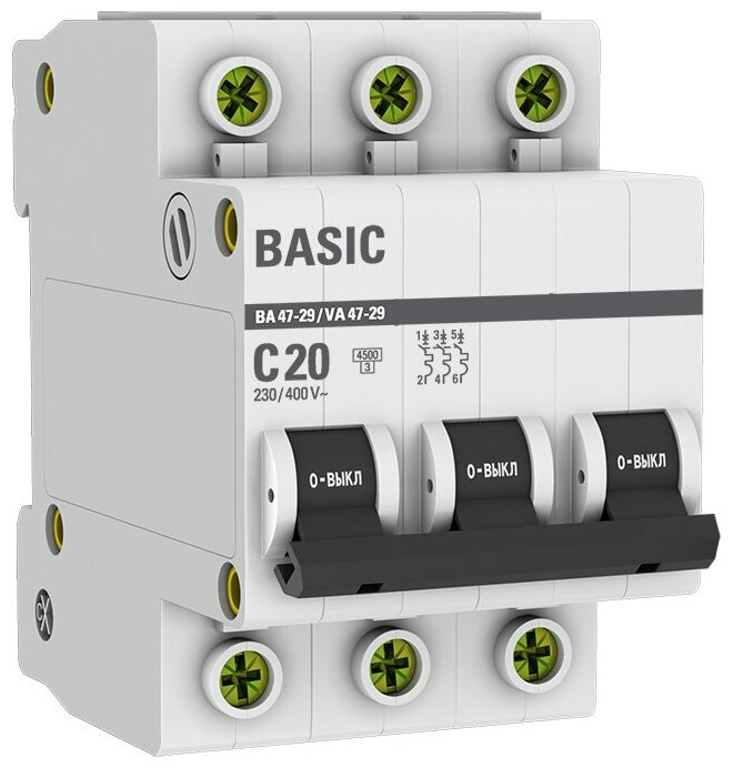 Автоматический выключатель EKF 3P 20А (C) 4,5kA ВА 47-29 EKF Basic 3 штуки информация: