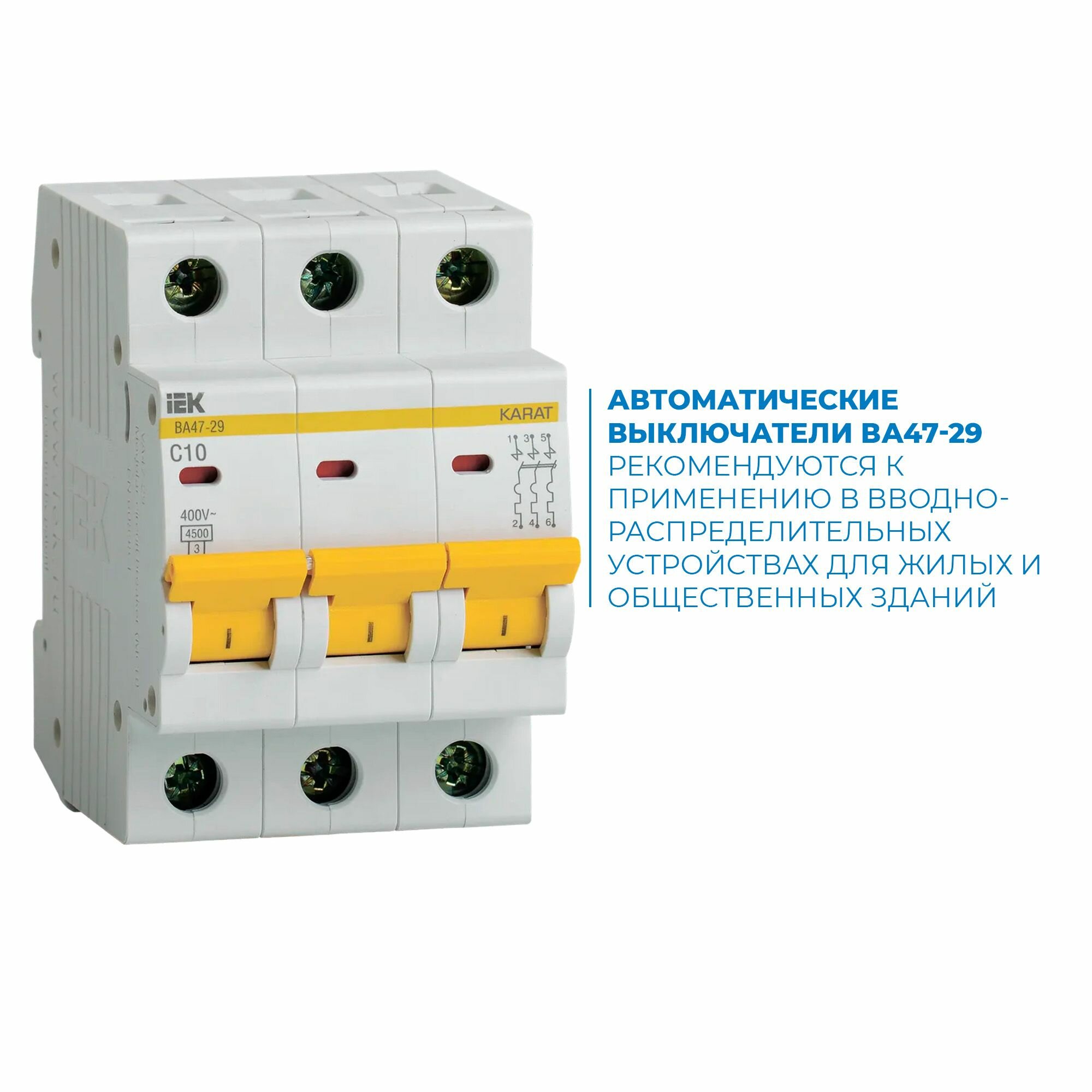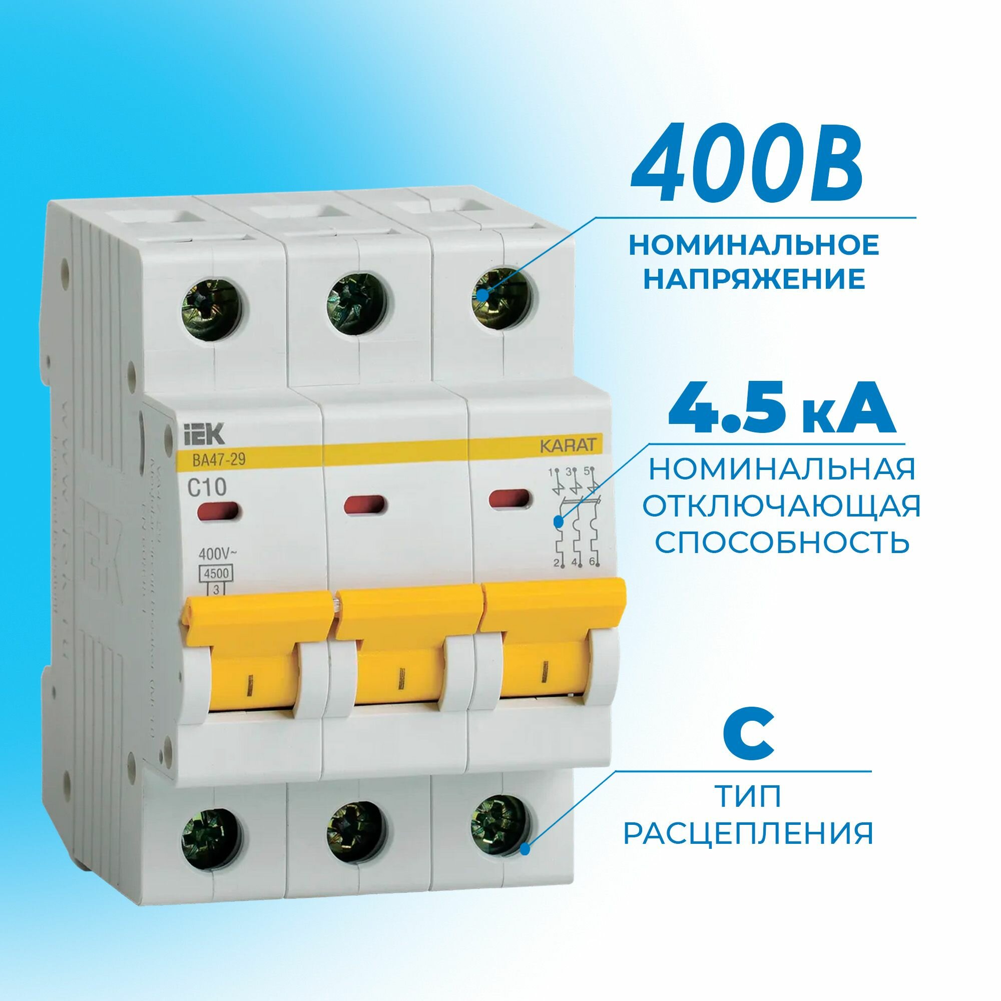 Автоматический выключатель 3P 10A (C) ВА47-29 4,5кА iEK информация: