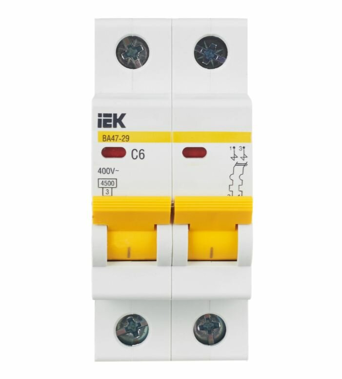 Автоматический выключатель IEK ВА47-29 2P 6А характеристика C (комплект из 2 шт)