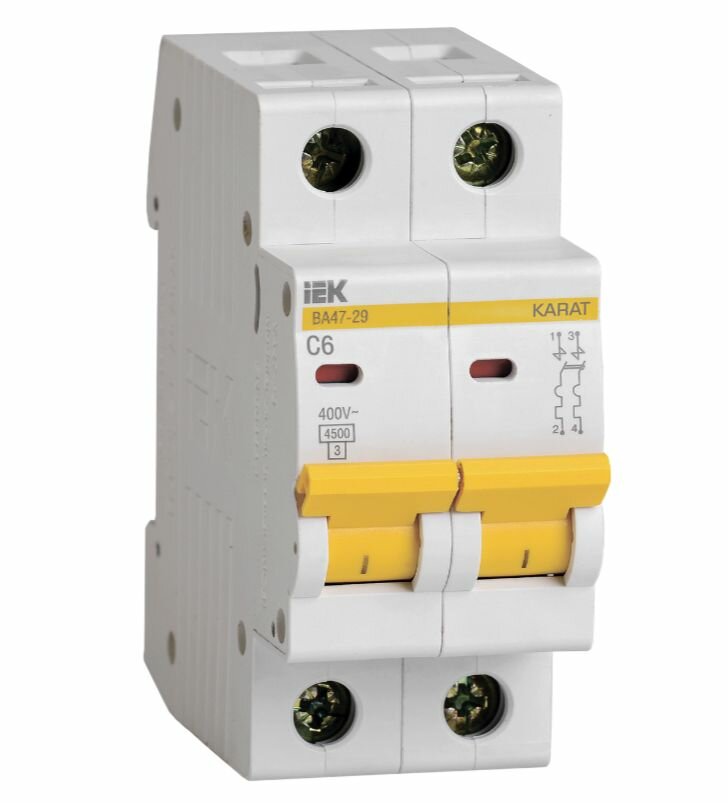 Автоматический выключатель ВА47-29 2П/6А C 4,5кА KARAT IEK (5шт) информация:
