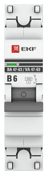 Выключатель автоматический модульный 1п B 6А 4.5кА ВА 47-63 PROxima EKF mcb4763-1-06B-pro информация: