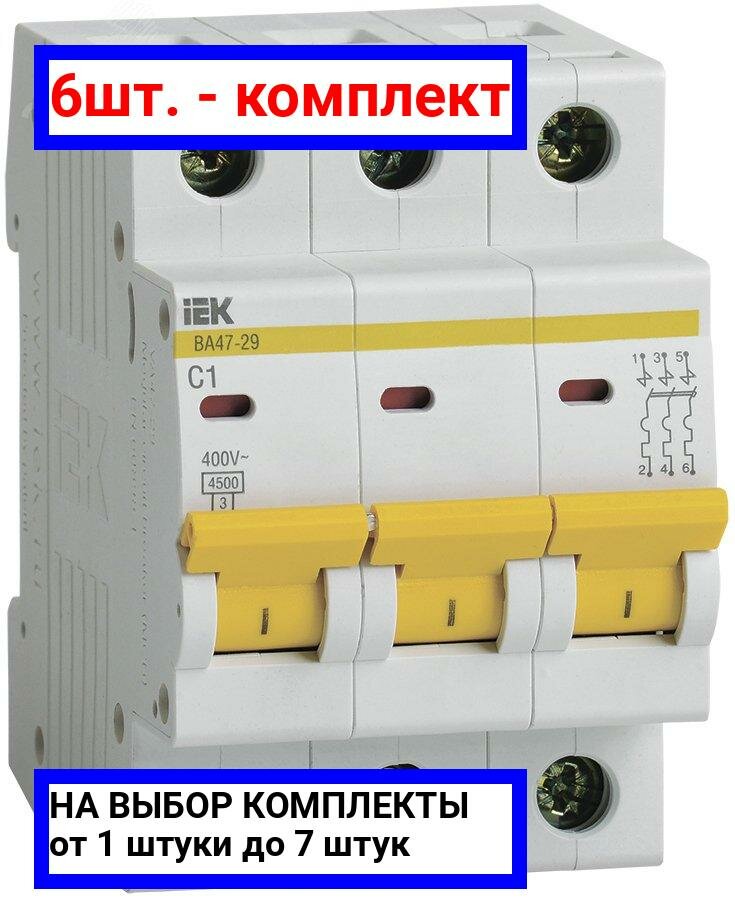 Выключатель автоматический модульный 3п D 6А 4.5кА ВА47-29 ИЭК MVA20-3-006-D, 1шт