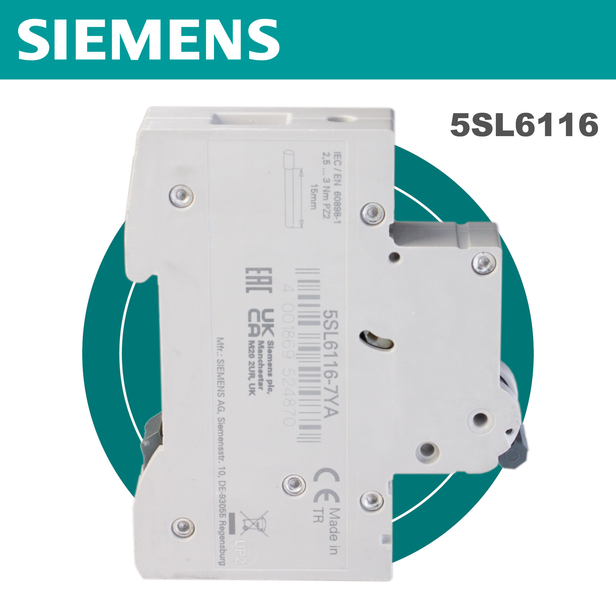 Автоматический выключатель 1P 16А 6кА тип C, Siemens 5SL6116-7YA информация: