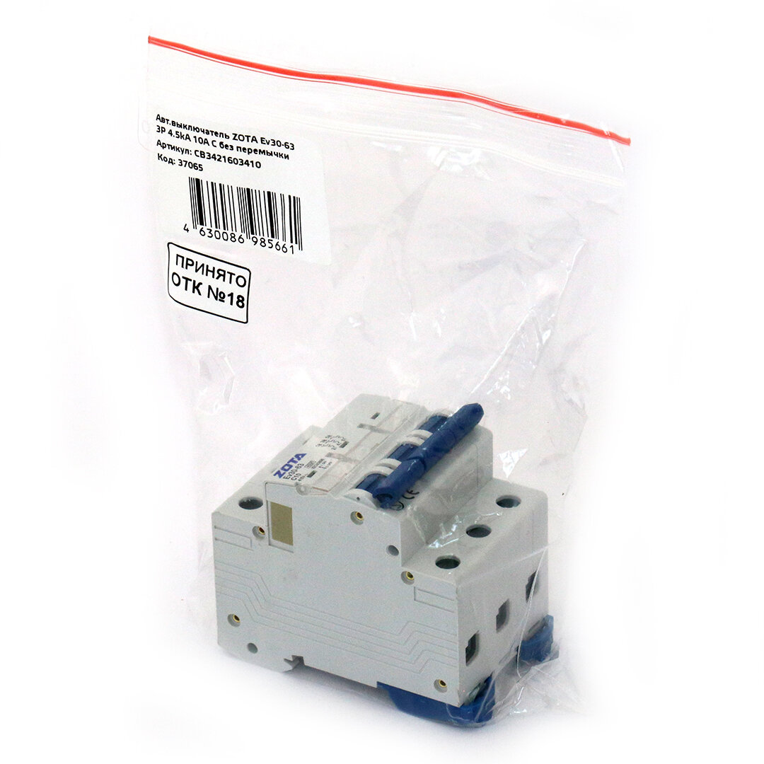 Зап.часть Авт.выключатель ZOTA Ev30-63 3P 4.5kA 10A C без перемычки информация: