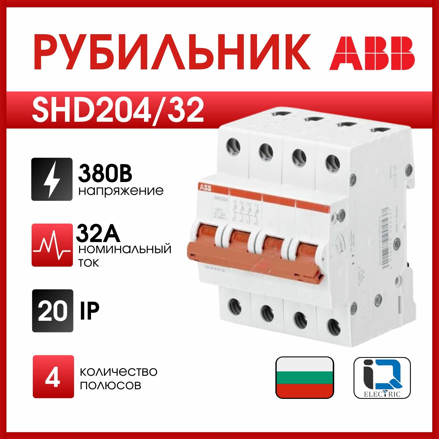 Отзывы на Рубильник 4 полюсный 32А SHD204 рычаг красный ABB 2CDD274111R0032