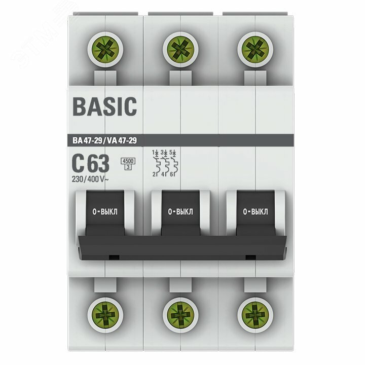 Выключатель автоматический трехполюсный ВА 47-29 63А C 4,5кА Basic. mcb4729-3-63C EKF информация: