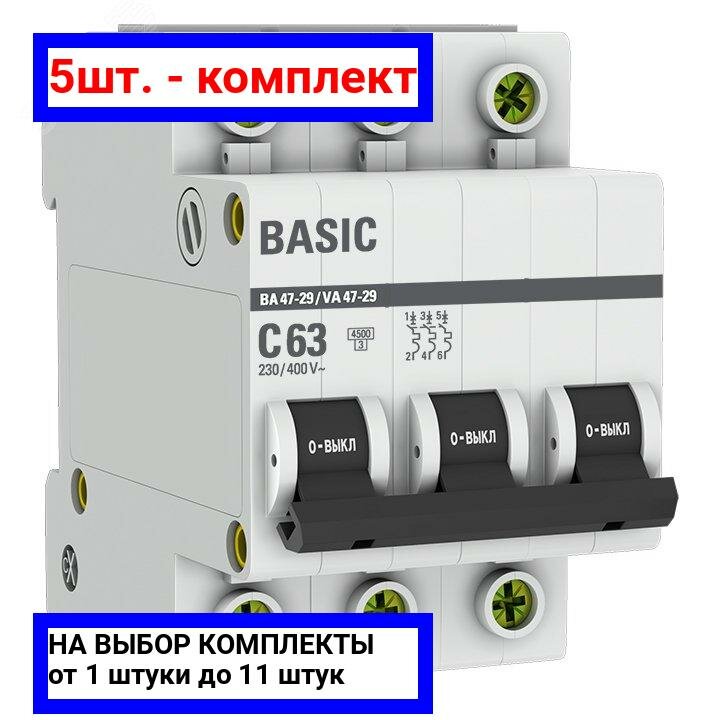 Выключатель автоматический модульный 3п C 63А 4.5кА ВА 47-29 Basic EKF mcb4729-3-63C