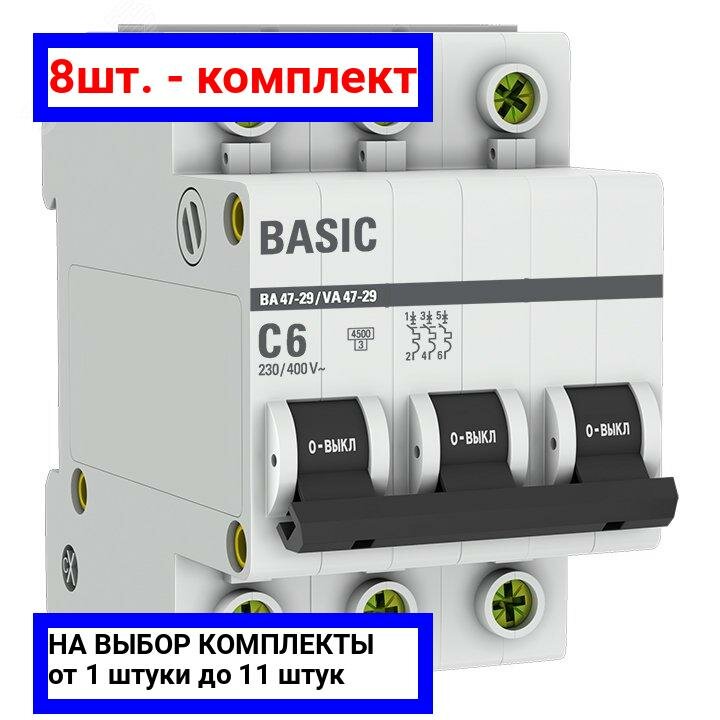 10 цен на Выключатель автоматический трехполюсный 6А С ВА47-29 4.5кА | код mcb4729-3-06C | EKF (8шт.в упак.)
