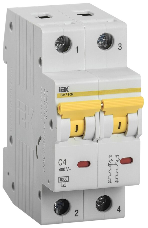 Автоматический выключатель IEK ВА47-60M 2Р 4А 6кА С MVA31-2-004-C информация:
