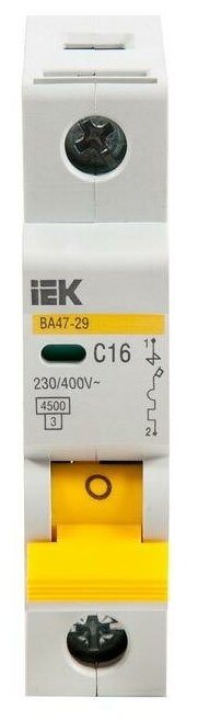 Выключатель автоматический модульный 1п C 16А 4.5кА ВА47-29 KARAT IEK MVA20-1-016-C информация: