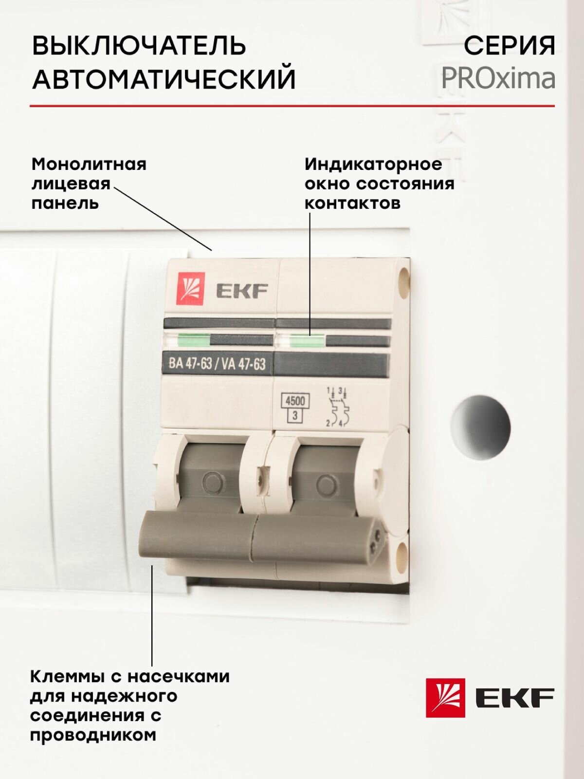 Выключатель автоматический модульный 2п D 63А 4.5кА ВА 47-63 PROxima, EKF MCB4763-2-63D-PRO (1 шт.)