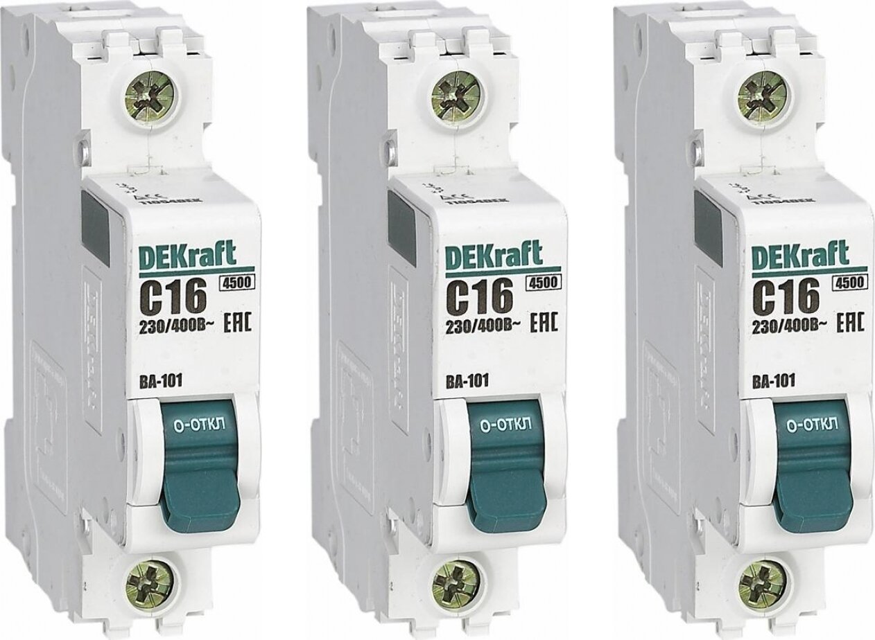 Отзывы на Автоматический выключатель DEKraft 1P 16А характеристика C (комплект из 3 шт.)