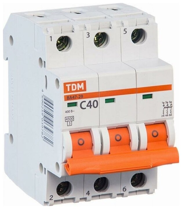 Выключатель автоматический TDM ВА47-29, 3п, 40 А, 4.5 кА информация: