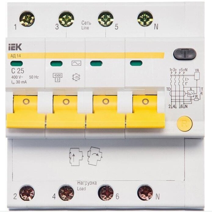 Отзывы на Дифавтомат АД-14 4Р 25А 30мА IEK тип АС трехфазный электронный 4,5кА АВДТ MAD10-4-025-C-030