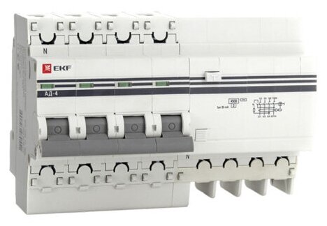 Автомат дифференциальный EKF PROxima АД-4 63А 30 мА 4P тип AC 4,5 кА (DA4-63-30-pro)