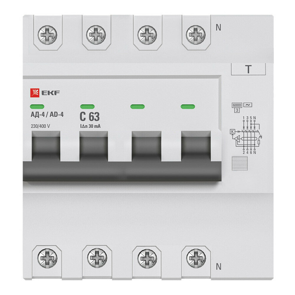 10 цен на Дифференциальный автомат АД-4 63А- 30мА (хар. C, AC, электронный) 6кА EKF PROxima