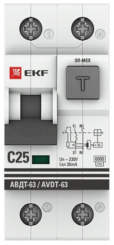 Отзывы на Выключатели дифференцальные модульные EKF Выключатель автоматический дифференциального тока 25А 30мА тип AC 6кА АВДТ-63 электромех. PROxima