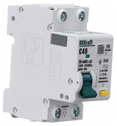DEKraft автоматический выключатель дифференциального тока 1Р+N 40А 30мА тип AC х-ка С ДИФ-103 6кА (арт. 16208DEK)