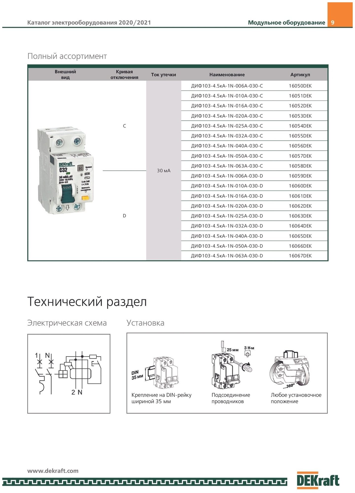 Выключатель автоматический дифференциального тока АВДТ 1Р+N 6А 30мА тип AC х-ка C ДИФ-103 4.5кА | код 16050DEK | DEKraft (7шт.в упак.)