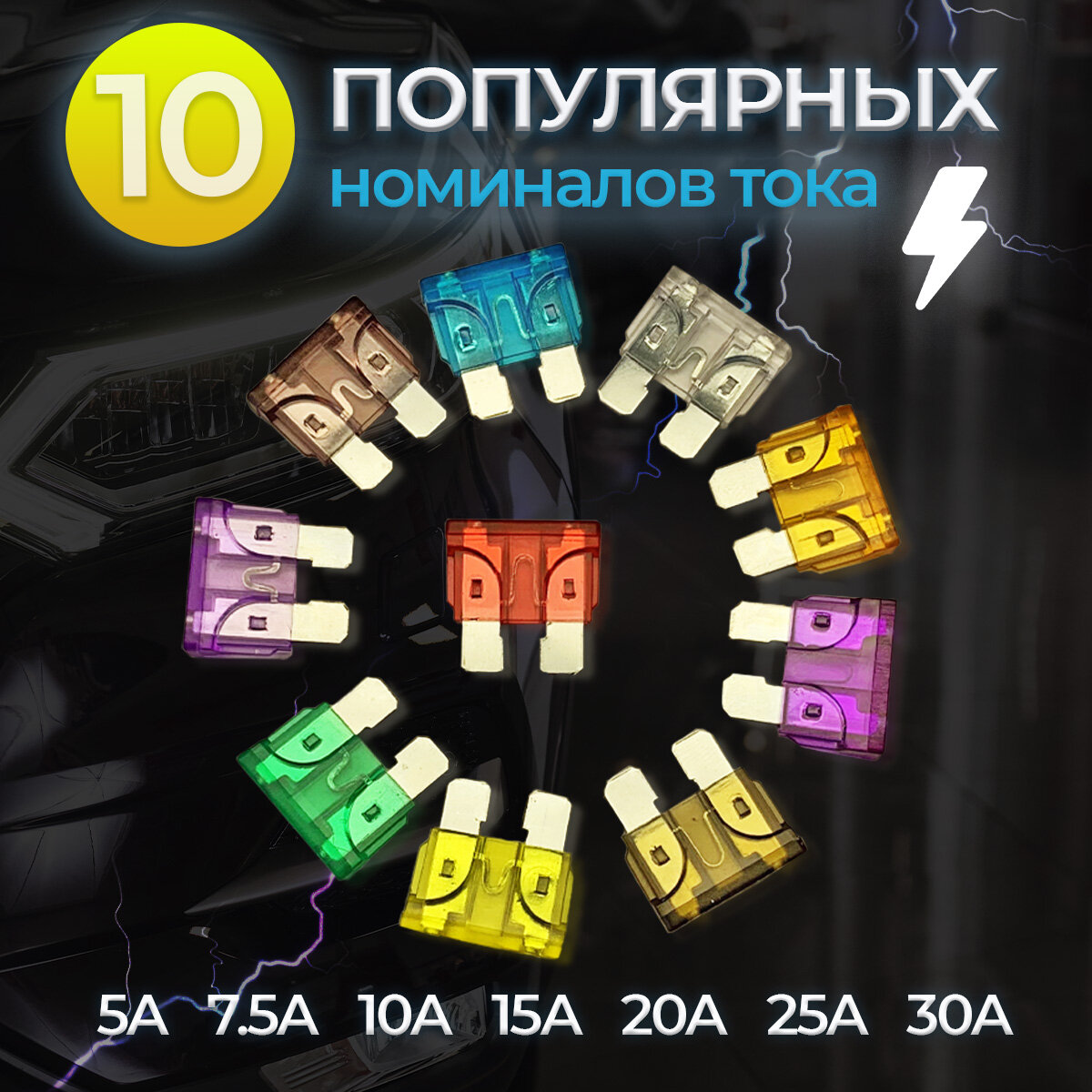 10 цен на Набор автомобильных предохранителей "Стандарт" 100шт/ 5-30А/ Флажковые предохранители