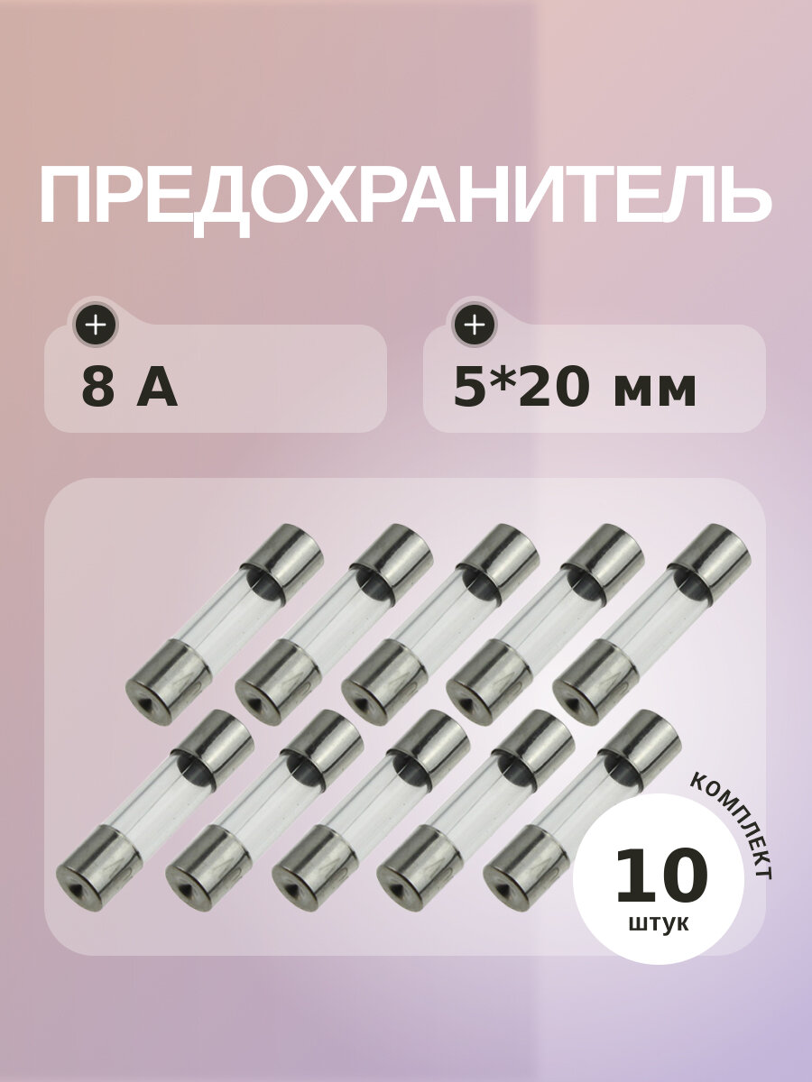 10 цен на Предохранитель 8A 250V 5*20мм (упаковка 10 шт)