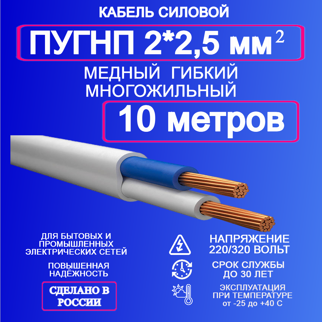 10 цен на Силовой кабель ПУГНП 2*2,5 10 метров