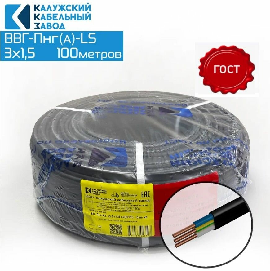 10 цен на Кабель ВВГ-Пнг(А)-LS 3х1,5 ГОСТ, бухта 100 метров, Калужский кабельный завод