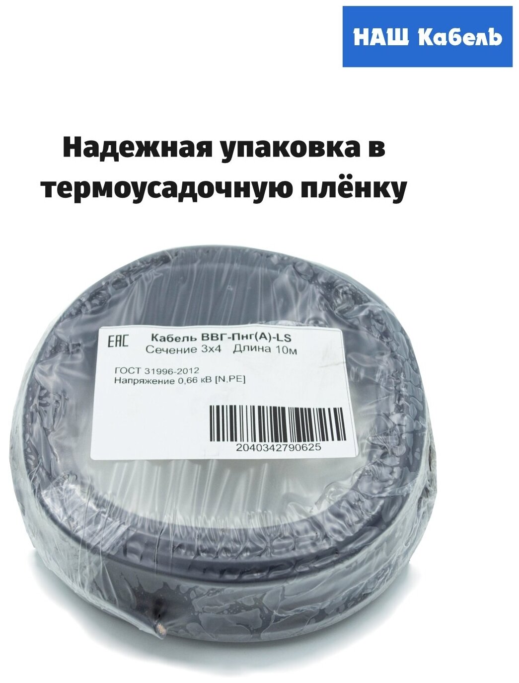 10 цен на Кабель электрический трехжильный силовой медный ВВГ-Пнг(А)-LS ГОСТ 3*4,0мм2 бухта 10 метров "Наш кабель"