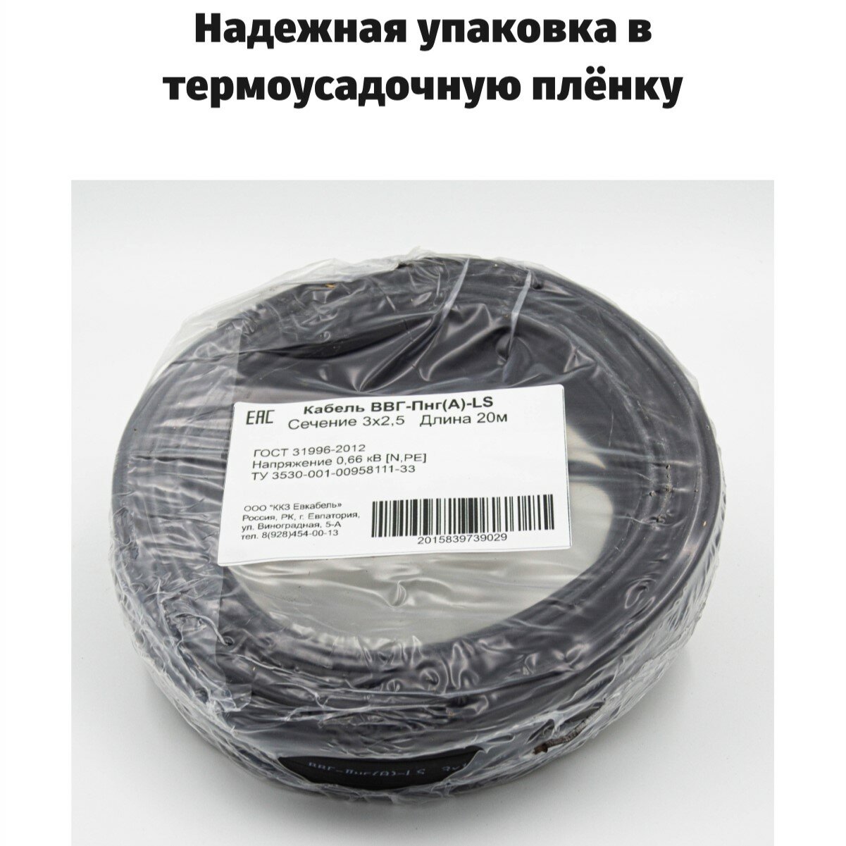 Отзывы на Кабель электрический трехжильный силовой медный ВВГ-Пнг(А)-LS ГОСТ 3*2,5мм2 бухта 20 метров "Наш кабель"